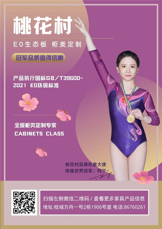 健康源于运动!近日,桃花村生态板与体操世界冠军何宁正式签约,聘请何宁担任桃花村品牌首席形象大使,携手共创桃花村品牌新高度!