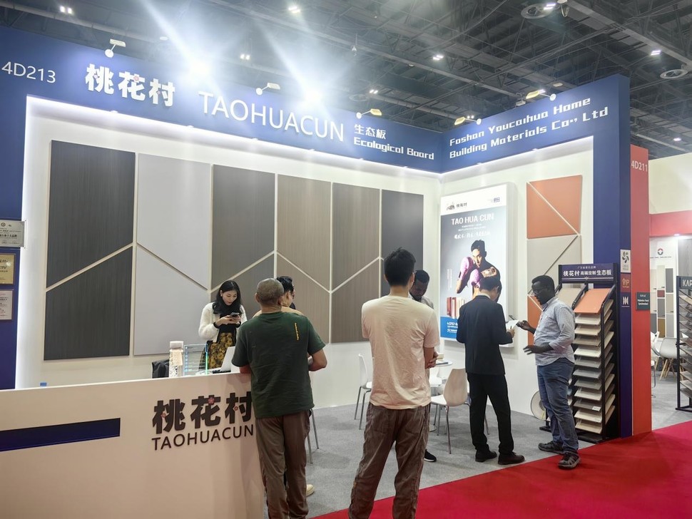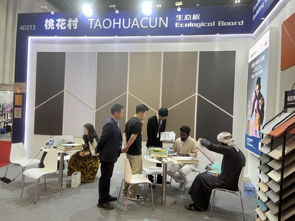 2024年12月17日至19日,迪拜国际会展中心内人声鼎沸,桃花村板材以其独特的展位设计和高品质的产品吸引了无数国际友人的驻足。作为“中国十大生态板品牌”,桃花村不仅带来了其标志性的生态板产品,更传递了一种对美好生活的不懈追求和承诺。在全球化的大潮中,桃花村板材选择以迪拜为窗口,向世界宣告:中国品牌,正以品质为舟,扬帆远航。