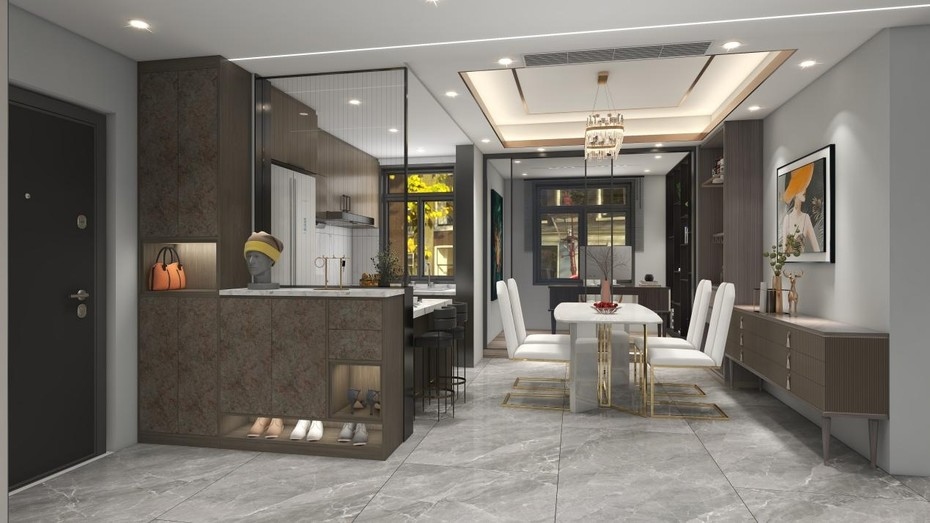 值得一提的是,桃花村的石纹板材在舒适度上也做出了显著提升。与冰冷的石材相比,石纹板材更加温暖舒适,为居住者打造了一个既美观又实用的生活环境。这种将自然美学的艺术融入家居的设计理念,让生活充满了素雅、质朴的自然味道,也让人们在繁忙的都市生活中找到了一丝宁静与惬意。