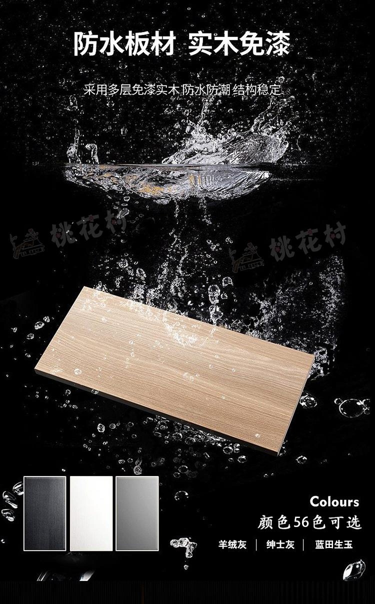 与此同时,为实现性能与美学的平衡,桃花村多功能板提供多达56种饰面选择,从极简羊绒灰到温润原木色,从现代轻奢纹理到自然木纹质感,既能适配全屋定制的一体化设计需求,也能满足门墙柜同色的美学追求,轻松融入简约、新中式、轻奢等多种家居风格。